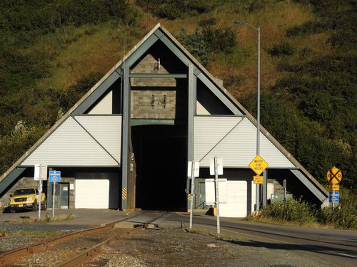 Tunnel nach Whittier Früher nur für die Railroad, inzwischen im Wechsel auch für Autos und Tracks. |