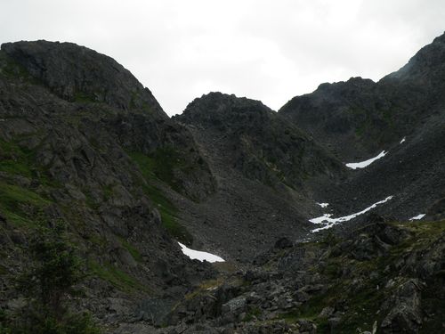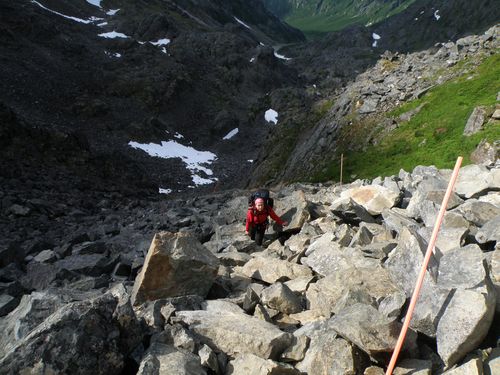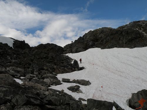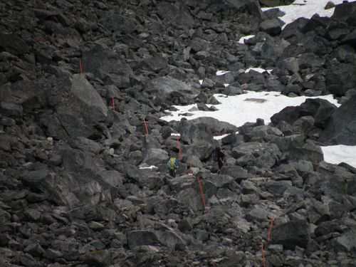 Dazwischen befindet sich der Anstieg, an dem damals über 1 Tonne Material mitgeschleppt werden musste und sich unendlich viele Tragödien abspielten.