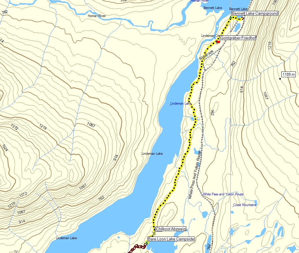 Ziel: Bennett Lake Camp oder Bennett Lake Railroad Station