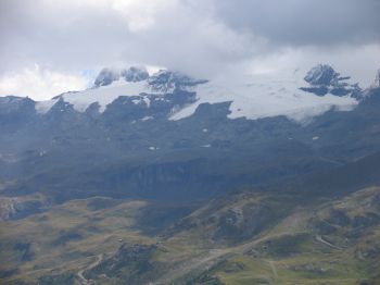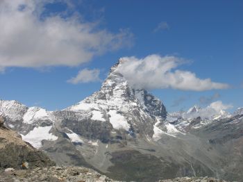![]() Und das Matterhorn mit seiner berühmten Wolkenfahne. |