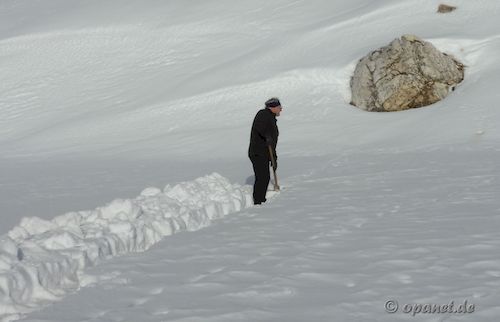 ![]() Nach Ankunft wurde zuerst abwechselnd der Weg zur gewünschten Stelle gegraben. |