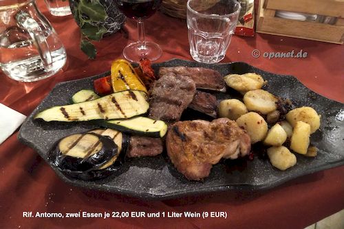 Essen in der Rif. Antorno und im Bistro in Bruneck. Insgesamt muss man betonen, dass die Preise in Italien inzwischen nicht mehr höher liegen als in Deutschland. Und wenn doch, dann bekommt man wesentlich bessere Qualität. Diesel war in Ligurien / Toscana zwischen 1,60 EUR und 1,66 EUR je Liter zu haben. In Südtirol lagen die Preise hier bis 1,83 EUR. Auch ist unbedingt zu erwähnen, dass Einkaufen in Italien ein Erlebnis ist. Ein positives Erlebnis. Egal ob im Supermarkt oder kleinen Geschäft. Das Personal ist immer freundlich. Bei unserer Rückreise kauften wir in Garmisch-Partenkirchen bei einem Bäcker etwas ein. Nicht besonders freundlich und die Gesichter zur Faust geballt. Das ist nicht selten in Deutschland. |