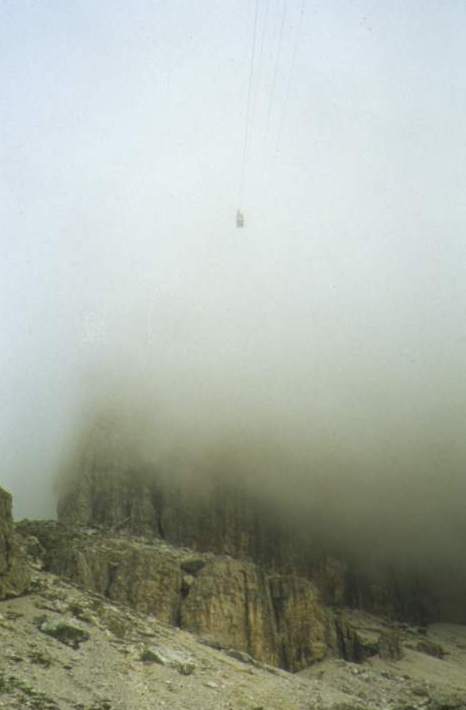 Am Passo Pordoi die Gondel, die die Schnitzelfresser nach oben bringt. Das Wetter ist "berauschend". |