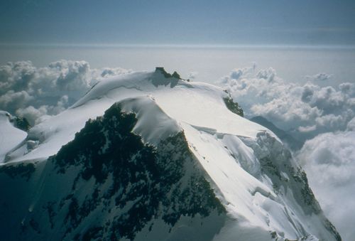 Das Monte Rosa Massiv mit Dufourspitze. Die Erstbesteigung fand am 1. August 1855 durch eine von Charles Hudson geleitete Seilschaft statt. Weitere Teilnehmer der Seilschaft waren John Birkbeck, Edward J. W. Stephenson und die Gebrüder Christopher und James G. Smyth. Die Bergführer Johannes und Matthäus Zumtaugwald aus Zermatt und Ulrich Lauener aus Lauterbrunnen bahnten den Engländern den Weg. Charles Hudson stürzte zehn Jahre später bei der Erstbesteigung des Matterhorns während des Abstiegs zu Tode. Die klassische Route über die Ostflanke wurde erstmals 1872 von den Engländern Richard und William Pendlebury und Charles Taylor, dem Schweizer Ferdinand Imseng, dem Österreicher Gabriel Spechtenhauser und dem Italiener Giovanni Oberto begangen. Ausgangspunkt für eine Besteigung der Dufourspitze von der Schweizer Seite über den Normalweg ist die Monte-Rosa-Hütte (2883 m ü. M.). Die Dufourspitze in den Walliser Alpen ist mit 4634 m ü. M. der höchste Gipfel der Schweiz sowie des gesamten deutschen Sprachraums. Als zweithöchster Gipfel der Alpen kann sie je nach Definition der europäisch-asiatischen Grenze zu den Seven Second Summits gezählt werden. |