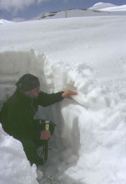 ![]() Vor der Tour wird ein Schneeprofil den Teilnehmern erklärt, die dann selbst eines machen müssen. Danach wurde die Tour für den nächsten Tag vorbereitet. Da die Wetteraussichten sehr trübe waren, erstellten wir eine Wegeskizze. Diese Wegeskizze wurde dann auch benötigt und penibel umgesetzt. In diesen Tagen im Mai gab es mehrere ungewollte und auch gefährliche Ereignisse. Die Wegskizze musste bis kurz nach der Scharte zwischen Mittleren und Großen Bärenkopf umgesetzt werden. Eine Seilschaft die am nächsten Tag nachkam, fragte uns, wer denn hier im Zick-Zack unterwegs war. |
