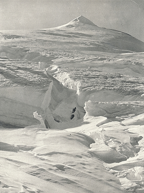 ![]() Gipfelfoto auf dem Johannisberg (3453 m) mit zwei anderen Bergkamerden aus Österreich, denen ich mich anschloss. rechts: Historische Aufnahme vom Johannisberg in 1925 (Hrsg.: Hans Schmithals) |