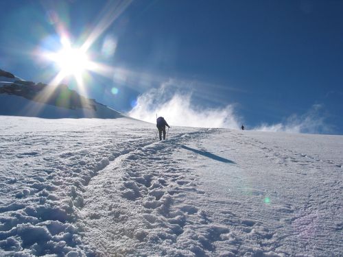 Zur vorherigen Besteigung sind wir als Letzte von etwa 50 Bergsteigern von der Hütte los und ich war als Erster auf dem Gipfel.