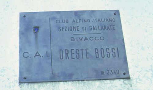 ![]() Am Bivacco Bossi (3345 m) war erst einmal Schluss. Koordinaten UTM- WGS84: OST 396988 NORD 5091940. |