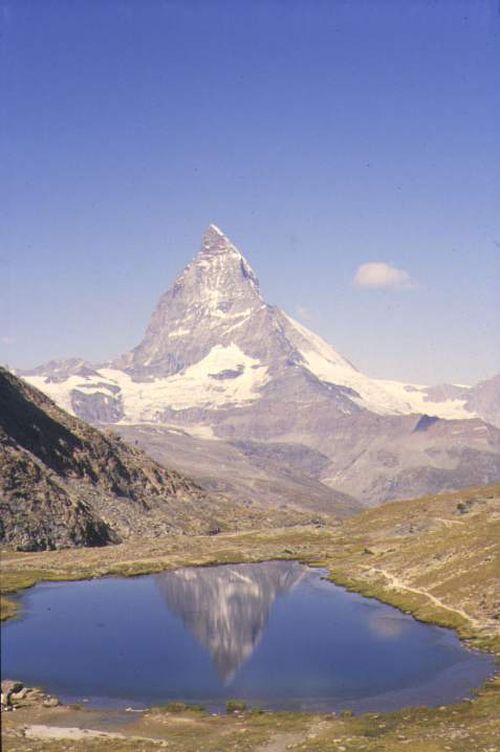 ![]() Das Ziel aus der Ferne, vom Riffelsee in der Schweiz gesehen. |