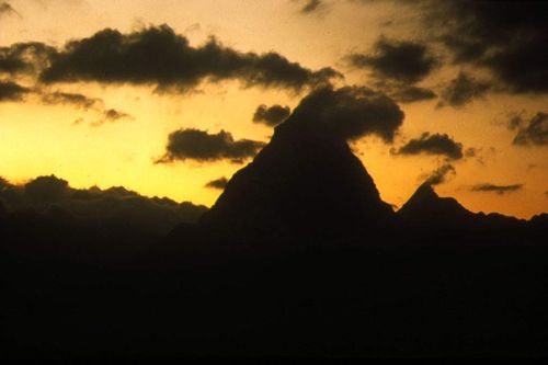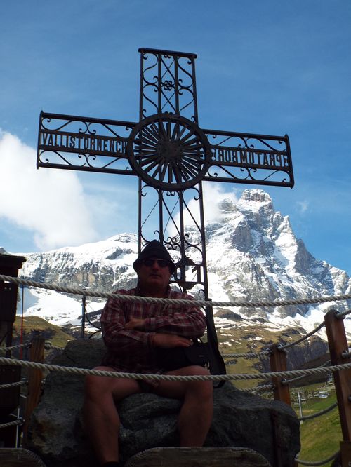 ![]() Das Matterhorn oder besser Monte Cervino von Süden und man stelle sich vor, das Bild rechts entstand ganz oben. Mein Seilpartner Fips und ich. |
