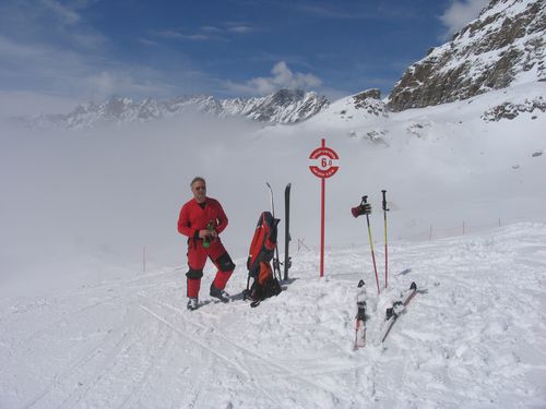 ![]() Man kann es so oder so sehen. Grenze am Plateau Rosa (3500 m) |
