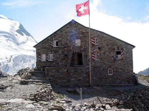 | Die Tierberglihütte in 2795 m endlich ganz nah. Offizielle Daten der Hütte: Die Hütte des SAC Baselland ist am Sustenpass, oberhalb Steingletscher auf einem Felssporn gelegen und bietet Platz für 70 Personen. |