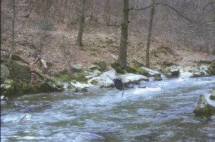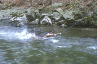 Training mit Seil und Gurt durch das Schmelzwasser.