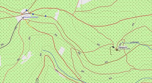 ©Nops Wanderkarte Der Neuntelstein liegt an der D 130. Ein unscheinbar geschobener Dreckparkplatz (bergseitig) bietet Parkmöglichkeit. Von hier sind es 500 m zum Fels. Wer sich die Zeit nimmt, kann von der Auberge de la Rothlach (Tel.: 03 88 08 34 33) mit mehreren Parkplätzen auch bequem 1,5 km zum Fels wandern. Dort kann man natürlich auch etwas Essen. |