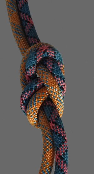 ![]() Sauber gelegt unterscheidet er sich nicht von falsch und richtig. Verwendet wird er als Seilverbindungsknoten und ich verwende diesen Knoten immer noch gern. |