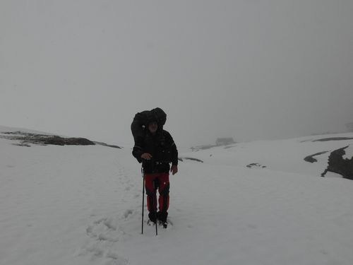 Abstieg bei Schnefall vom Basecamp bei Breuil-Cervinia. |