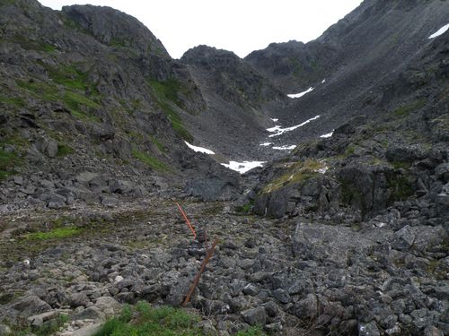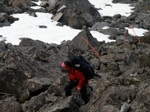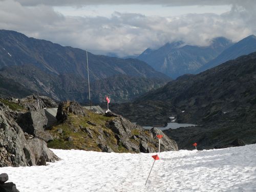 Dazwischen befindet sich der Anstieg, an dem damals über 1 Tonne Material mitgeschleppt werden musste und sich unendlich viele Tragödien abspielten.