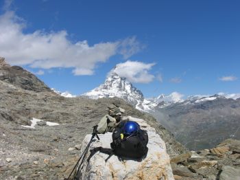 ![]() Und das Matterhorn mit seiner berühmten Wolkenfahne. |