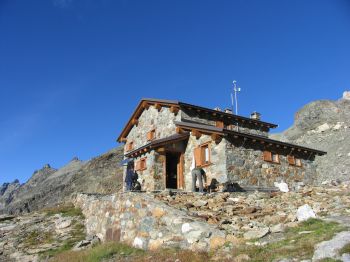 Von der Hütte zum Lago di Cignana (2158 m). Von dort kann man die Etappe gehen, wenn man den Klettersteig meiden möchte. Die Hütte selbst in neu gemacht. Die Nacht für AV-Mitglieder 15 EUR. Angenehme Schlafmöglichkeit unter dem Dach. Die Toiletten sind im separaten Häuschen, etwa 50 m von der Hütte entfernt mit fliessendem kalten Wasser und zum Sitzen. |