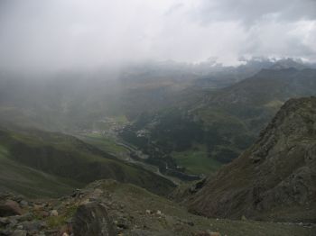 ![]() Blick in Richtung Plateau Rosa mit dem Lago Goillet, 2516 m und dem Breithorn. |