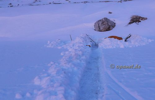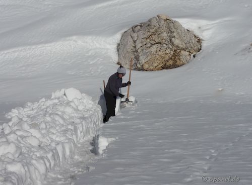 ![]() Nach Ankunft wurde zuerst abwechselnd der Weg zur gewünschten Stelle gegraben. |