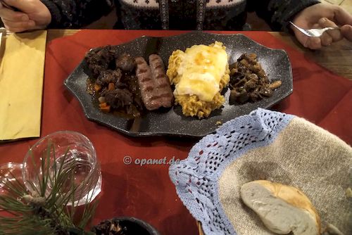 | Mit zwei mittleren Wintergas-Kartuschen sind wir gut über die Runden gekommen. Schnee gab es ja ausreichend und da das das Wetter sehr angenehm war, konnten wir uns bei der Wasserzubereitung auch Zeit lassen. Es gab Zeiten, da mussten wir wegen Schneesturm im Zelt den Schnee schmelzen. Was natürlich mehr Aufwand bedeutet und bei langem nicht so viel gemacht wurde. Nach dem Abstieg kehrten wir in der Malga Rin Bianco ein, zogen dann gemächlich unsere Pulken bis zum Auto und verstauten immer noch bei Sonnenschein unsere Ausrüstung. Auf dem Weg nach Hause besuchten wir wie immer den Weihnachtsmarkt in Bruneck, das Restaurant K1 und kauften in der Metro Bozen noch etwas ein. |