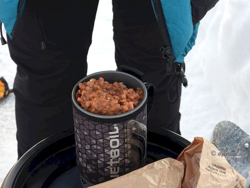 | Für den Aufstieg packten wir einige Sachen schon zu Hause und am Abend zuvor. U. a. wurde auch Tee für das Frühstück und die erweiterten Pausen während des Aufstieges zubereitet. ![]() |