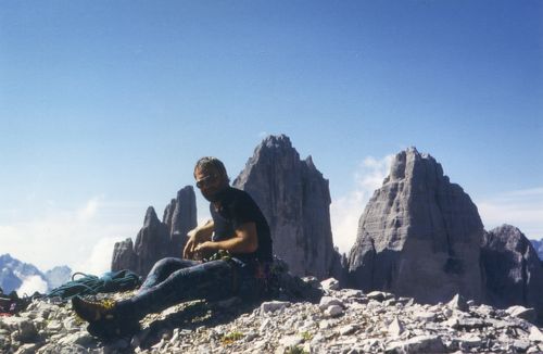 Von oben hat man dann einen phantastischen Blick auf die Nordwände der Drei Zinnen. Hier nach einer Klettersteigbegeheung. |