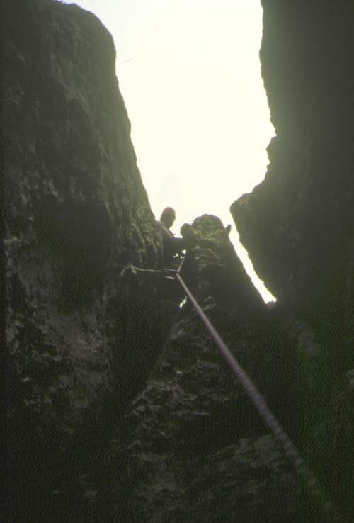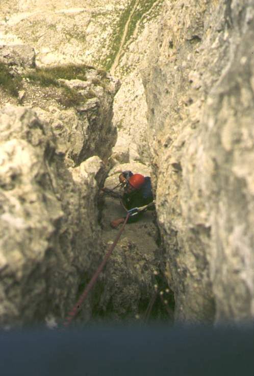 ![]() Die Route verschwindet im Fels. Es gibt einen schönen überhängenden Spreizkamin. |
