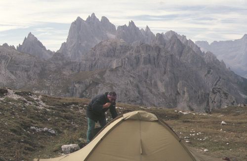 ![]() Nach dem Zeltaufbau in der Nähe der Auronzo-Hütte war Ausruhen angesagt. |