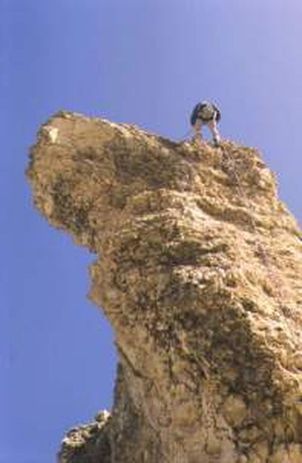 Nordkante IV gutes Wetter, im Schatten sehr kalt, nicht zu empfehlen, sehr brüchige Route - kaum ein fester Griff/Tritt, Steinschlag enmass ist normal, kein AH vorhanden, haben 2 Opferschlingen belassen, Bananen nicht nachgeholt - zu gefährlich, über Überhang abgeseilt