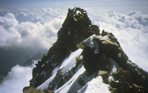 Das Monte Rosa Massiv mit Dufourspitze. Die Erstbesteigung fand am 1. August 1855 durch eine von Charles Hudson geleitete Seilschaft statt. Weitere Teilnehmer der Seilschaft waren John Birkbeck, Edward J. W. Stephenson und die Gebrüder Christopher und James G. Smyth. Die Bergführer Johannes und Matthäus Zumtaugwald aus Zermatt und Ulrich Lauener aus Lauterbrunnen bahnten den Engländern den Weg. Charles Hudson stürzte zehn Jahre später bei der Erstbesteigung des Matterhorns während des Abstiegs zu Tode. Die klassische Route über die Ostflanke wurde erstmals 1872 von den Engländern Richard und William Pendlebury und Charles Taylor, dem Schweizer Ferdinand Imseng, dem Österreicher Gabriel Spechtenhauser und dem Italiener Giovanni Oberto begangen. Ausgangspunkt für eine Besteigung der Dufourspitze von der Schweizer Seite über den Normalweg ist die Monte-Rosa-Hütte (2883 m ü. M.). Die Dufourspitze in den Walliser Alpen ist mit 4634 m ü. M. der höchste Gipfel der Schweiz sowie des gesamten deutschen Sprachraums. Als zweithöchster Gipfel der Alpen kann sie je nach Definition der europäisch-asiatischen Grenze zu den Seven Second Summits gezählt werden. |