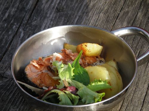 | Unterwegs kann man unter Beachtung der regionalen Bedingungen auch selbst den Fisch angeln. Bei kleineren Fischen ist es kein Problem. Bei größeren Exemplaren kann es zu Transport- und Geruchsproblemen kommen. So einfach lässt sich ein Teufelsfisch oder Halibut nicht im Rücksack beim Trekking transportieren. |