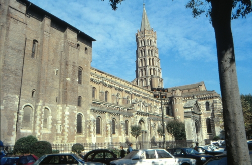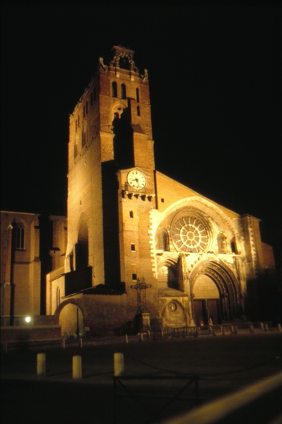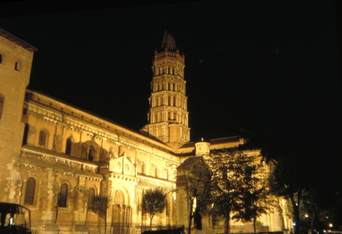 ![]() Basilika Saint-Sernin (11. bis 13. Jh.) bei Tag und bei Nacht. |