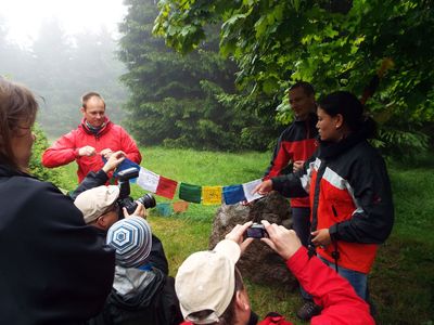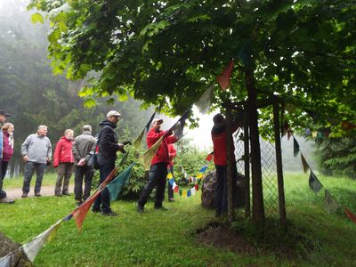 Tibetische Gebetsfahnen werden angebracht durch: