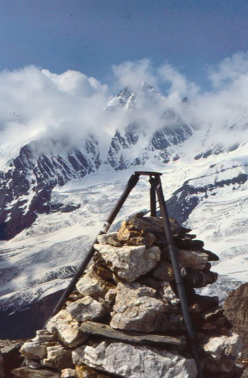 ![]() Gipfelfoto auf dem Johannisberg (3453 m) mit zwei anderen Bergkamerden aus Österreich, denen ich mich anschloss. rechts: Historische Aufnahme vom Johannisberg in 1925 (Hrsg.: Hans Schmithals) |