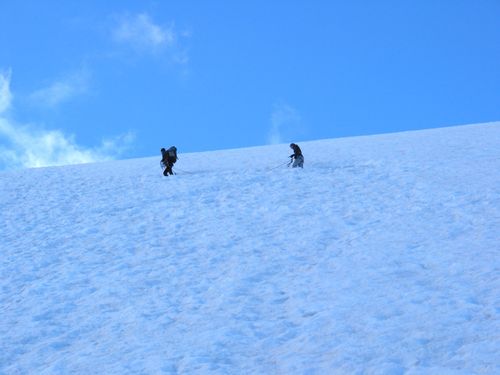 Zur vorherigen Besteigung sind wir als Letzte von etwa 50 Bergsteigern von der Hütte los und ich war als Erster auf dem Gipfel.