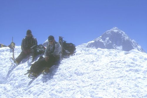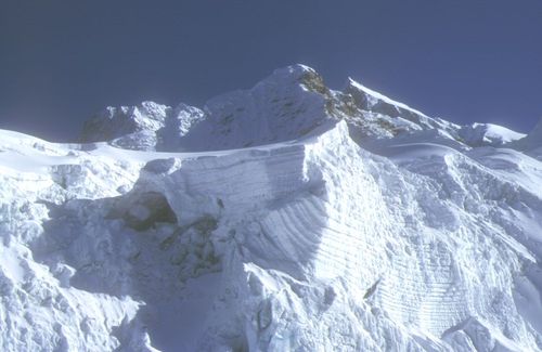 ![]() Gipfelaufschwung zum Imjatse (6189 m) Bildmitte: der opa |
