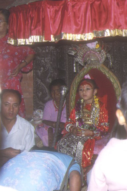 ![]() Auch ein Mädchen, ein ganz besonderes: Kumari Sie ist eine Inkarnation der furchterregenden hinduistischen Göttin Taleju. |