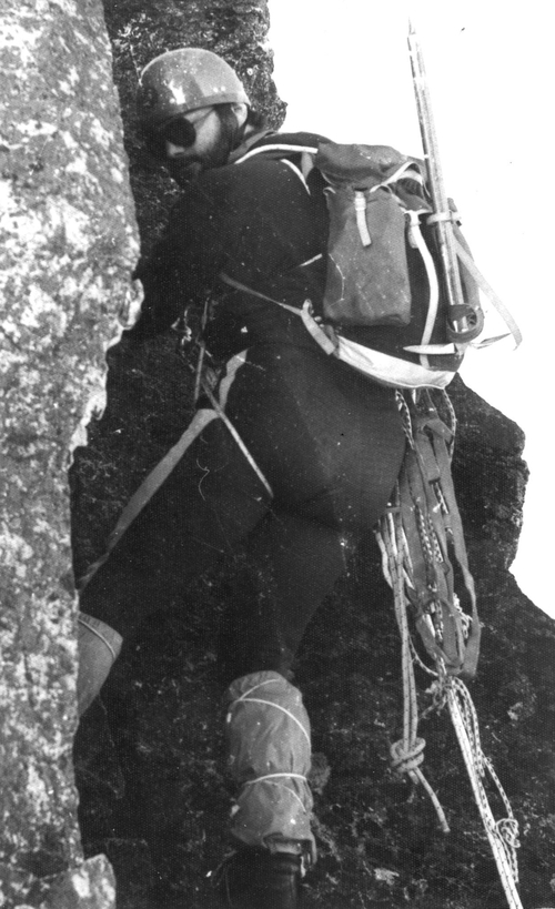 Am Grat zur Lomnitzspitze im Februar 1989. Die Ausrüstung ist Museumsreif. Den Eispickel habe ich nicht mehr. Warum auch immer. Vier Winterbesuche wurden absolviert. Bei einem Besuch gab es nur Ski alpin. Ein Sommerbesuch zum Klettern in der slowakischen Hohen Tatra und ein Sommerbesuch als Jugendlicher in der polnischen Hohen Tatra (Zakopane) zum Trekking / Wandern. |