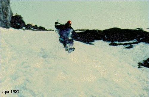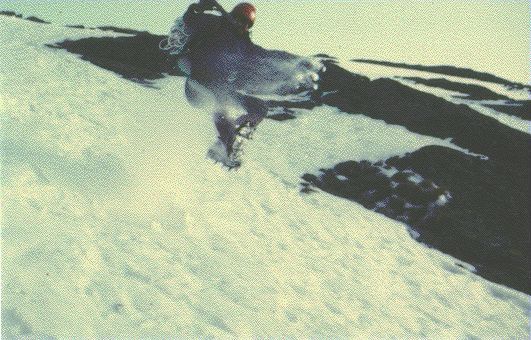 ![]() Um den Abstieg zu beschleunigen, sprangen wir in einer Rinne abwärts. |