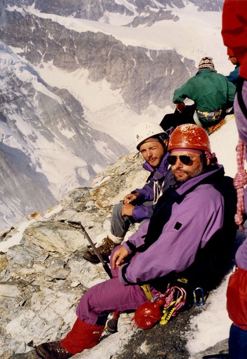![]() Das Matterhorn oder besser Monte Cervino von Süden und man stelle sich vor, das Bild rechts entstand ganz oben. Mein Seilpartner Fips und ich. |