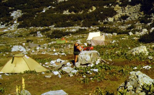 - Maljowiza Klassischer Weg V+/A1, Sack! Schon am Einstieg (II) der Sack, es war sehr kalt, machten dann die Diagonale IV+/A2 (Einstieg Nr. 7)