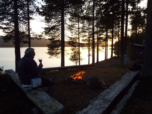 Ein Lagerfeuer und Wein machen den Urlaub perfekt. |