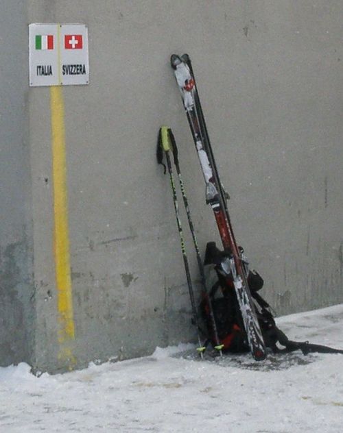 ![]() Man kann es so oder so sehen. Grenze am Plateau Rosa (3500 m) |