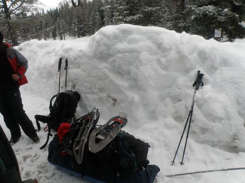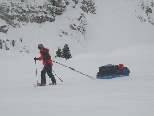 ![]() Mit Schneeschuhen, Pulka und Zelt. |