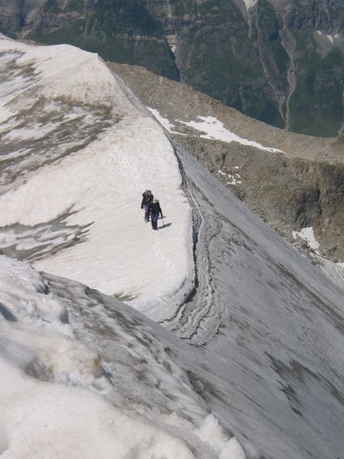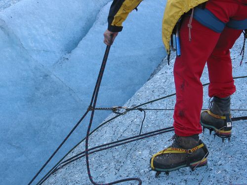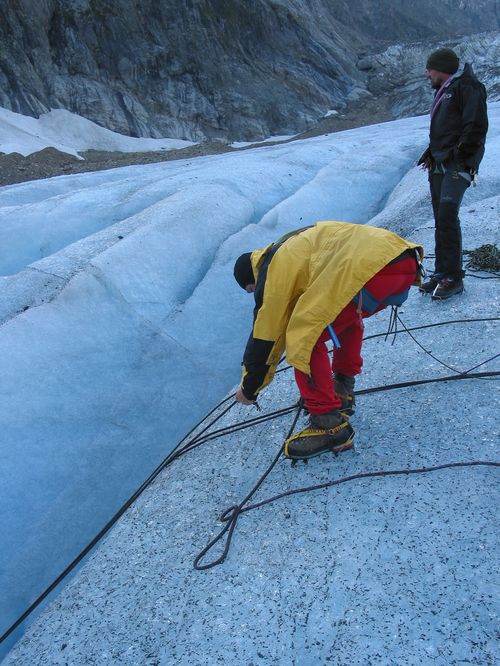 | Ausbildung auf dem Gletscher. Immer wieder wird wiederholt und die neuen Erkenntnisse umgesetzt. Im Notfall muss es fast blind von der Hand gehen. |