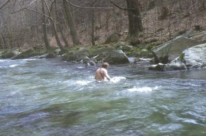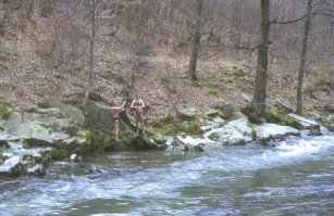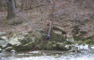 Training mit Seil und Gurt durch das Schmelzwasser.