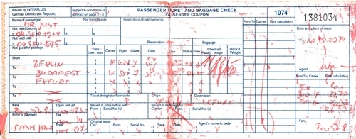 Hier warte ich in Berlin Alexanderplatz auf die S-Bahn nach Berlin-Schönefeld. Wir fuhren mit dem Zug nach Berlin, um dann von dort mit dem Flugzeug nach Budapest zu fliegen. Dort wollten wir erst nach Südungarn und dann etwas östlich im Boden wieder zurück nach Budapest. In Südungarn war dann alles zu Ende und es ging direkt nach Budapest (mit Begleitung der Stasi in Zivil). |