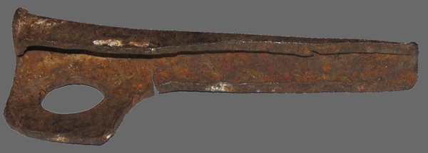 Bei einer sehr selten begangenen Tour, es war wohl die 3. Begehung, kam mir auf dem Seil vom Vorsteiger dieser Haken entgegen. Natürlich rief ich dies nicht nach oben. Warum?